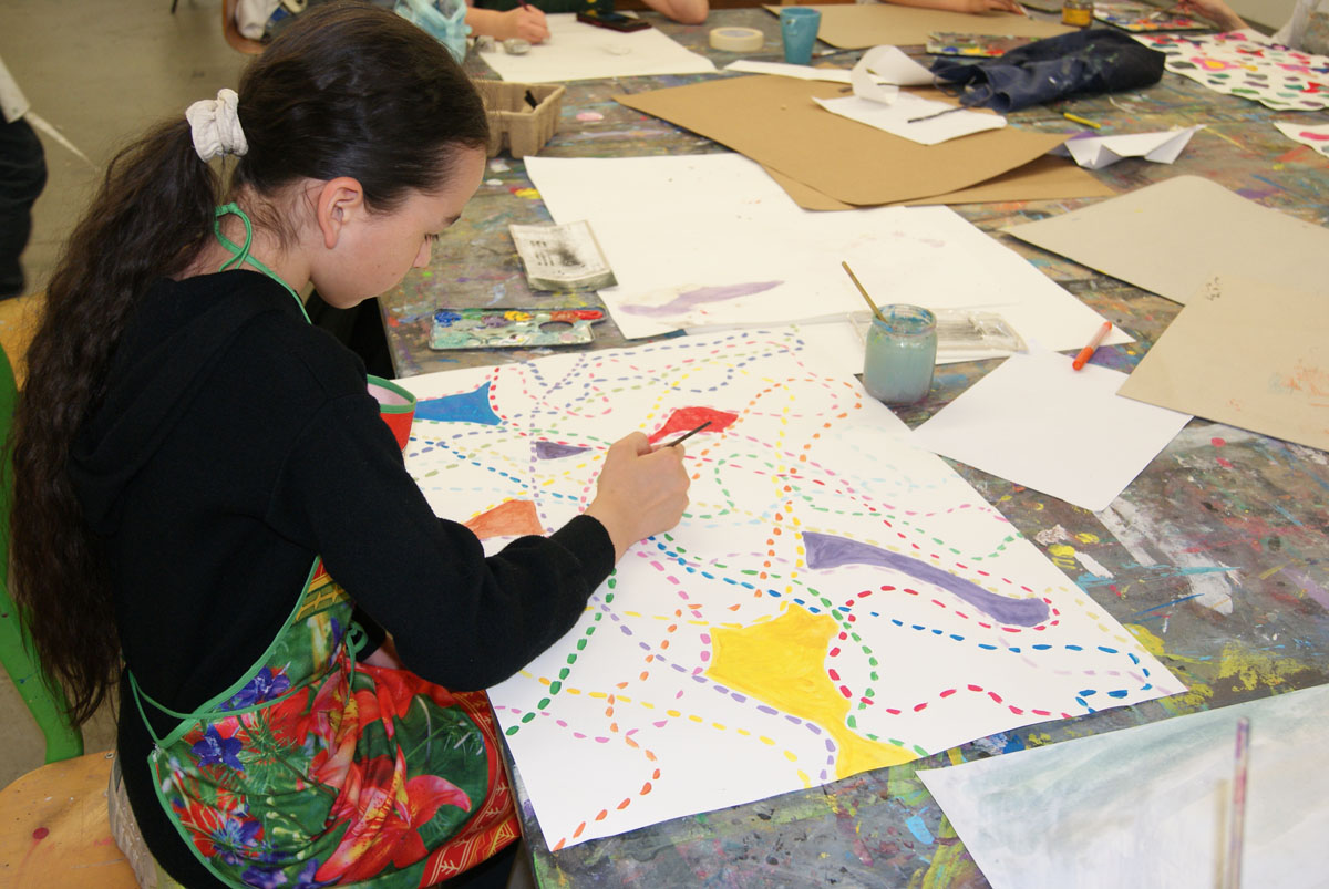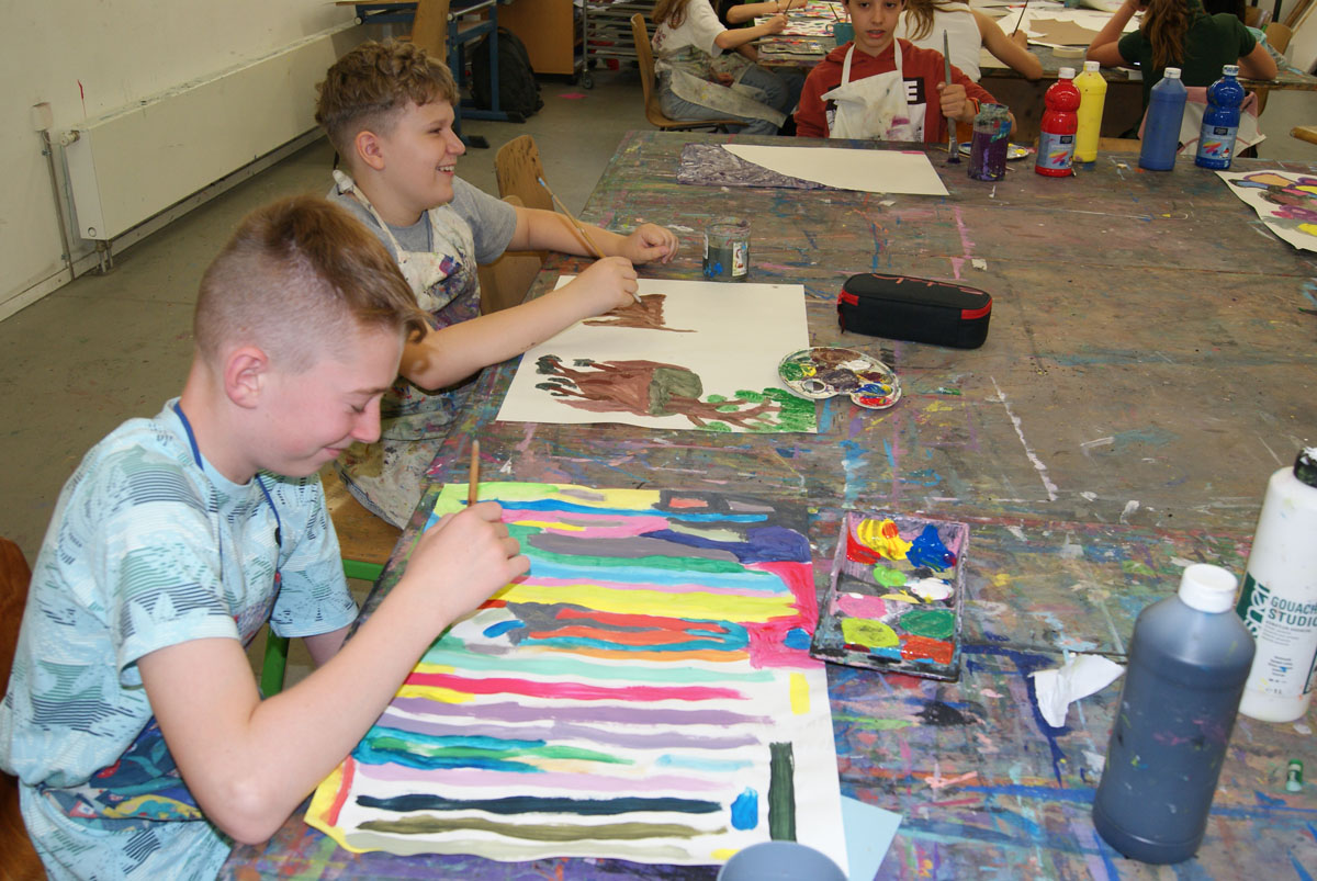 Wenn wir träumen, mischen sich auf unserer inneren Leinwand - hinter den geschlossenen Augen - Phantasiewelt mit Realität. Träume können wichtige Hinweise geben, wohin wir uns ganz persönlich weiter entwickeln wollen und verraten viel über unsere Ziele im Leben. Ausgehend von unseren Träumen entwickeln wir eine eigene Bildidee und Bildwelten. Wir führen während der Projektwoche ein zeichnerisches Traumtagebuch und nehmen so den Faden zu unserer ganz persönlichen, unterbewussten Bildwelt auf. Aus diesem Fundus schöpfen und malen wir Geschichten, Traumlandschaften und Traumwesen und entwickeln malerische Utopien für unser alltägliches Leben. Wir erproben in dieser Projektwoche die psychologischen Wirkungen der Farbtöne und lernen verschiedene malerische Techniken kennen.