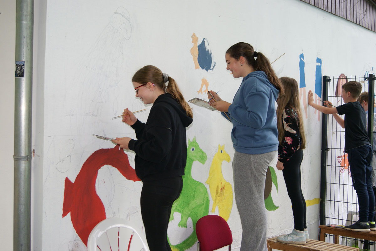 Am Freitag war es dann geschafft. Hier seht ihr die fertigen Wandbilder: