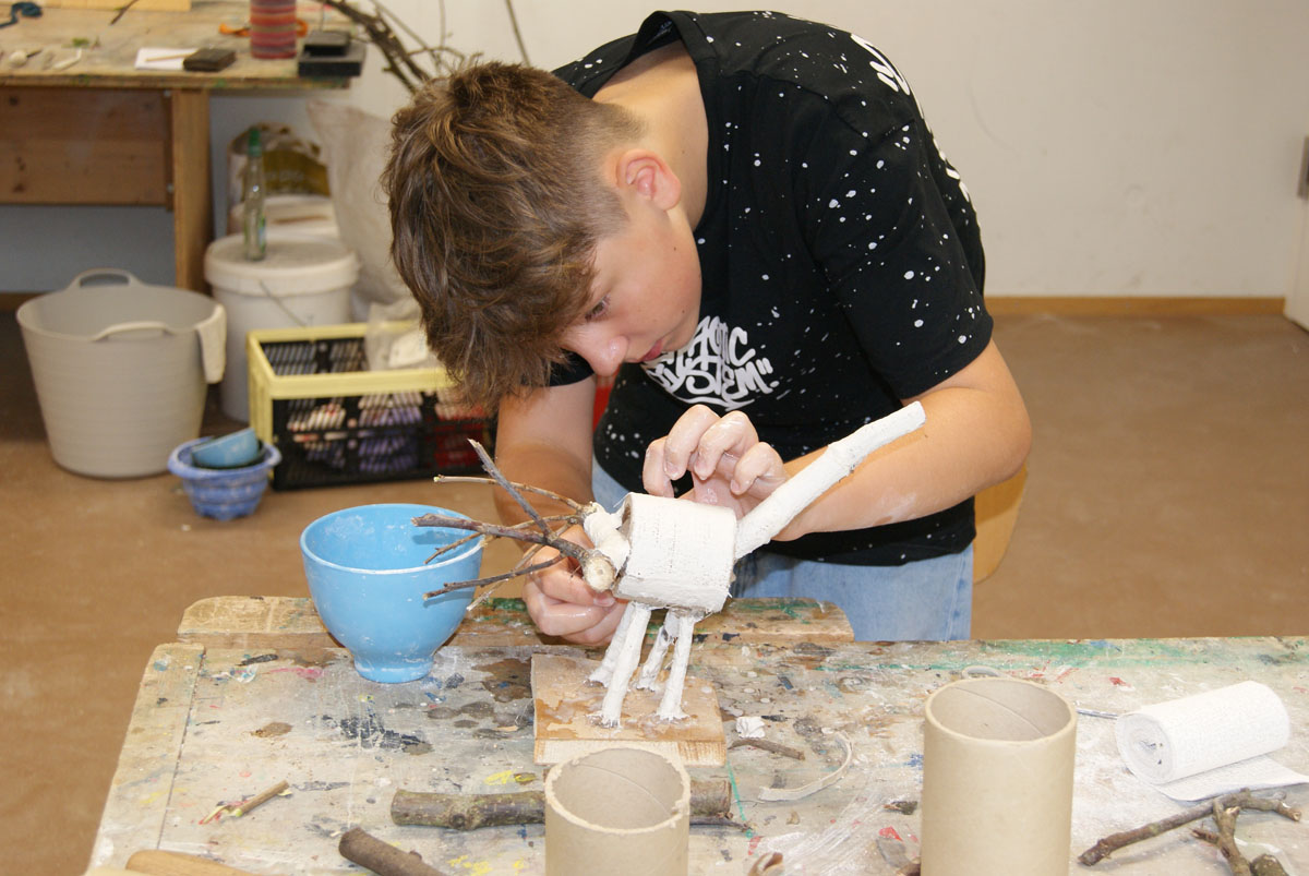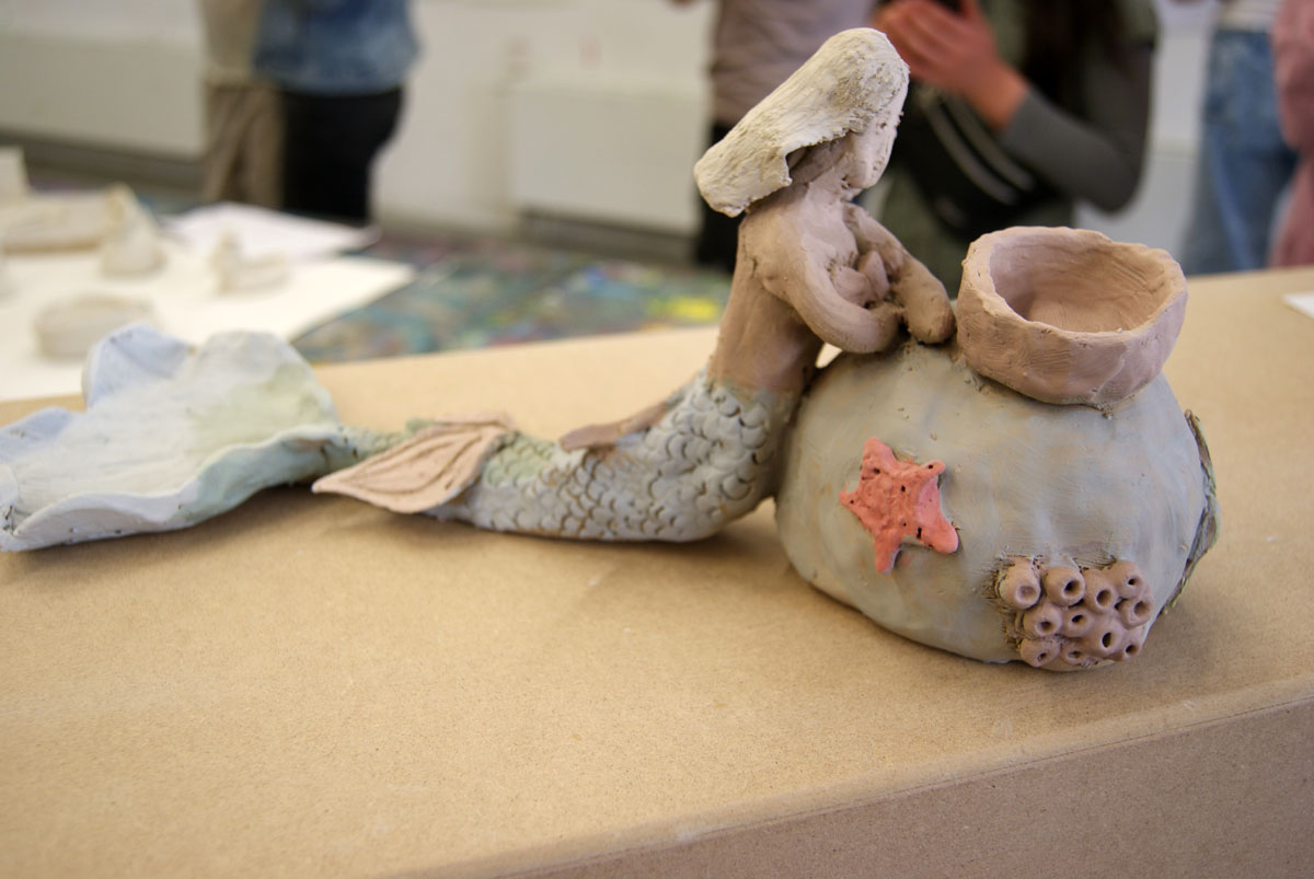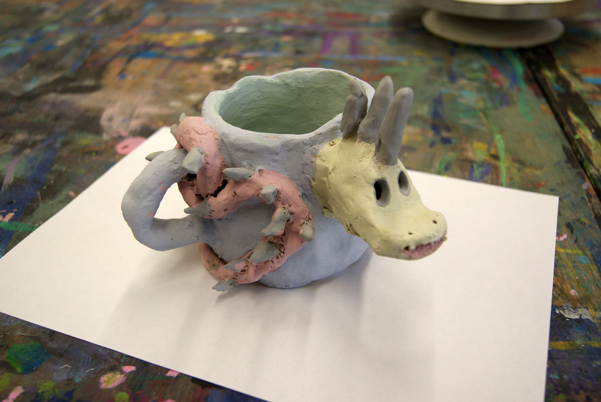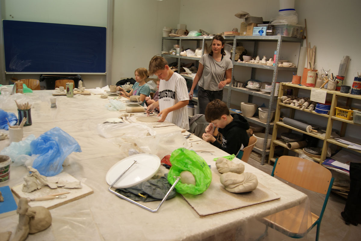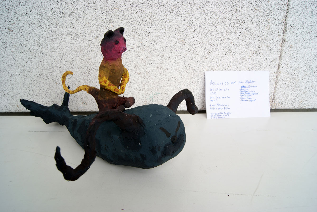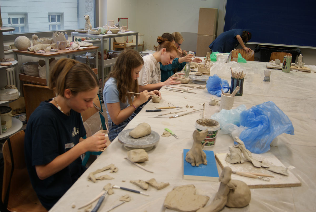 Projektbeschreibung: In diesem Projekt geht es um das Modellieren von Figuren aus Ton, welche eine Geschichte über sich erzählen. . Das kann ein Tier sein, ein Gefäß oder ein Fabelwesen. Wichtig wird sein, die entstehenden Figuren zum Sprechen zu bringen. Sie sollen über ihre Form etwas von sich selbst erzählen. Das ist schwerer, als man denkt, aber es ist auch eine schöne Aufgabe. Am Ende wollen wir die Tonfiguren noch farbig fassen, bevor wir sie am Freitag in einer Ausstellung präsentieren.