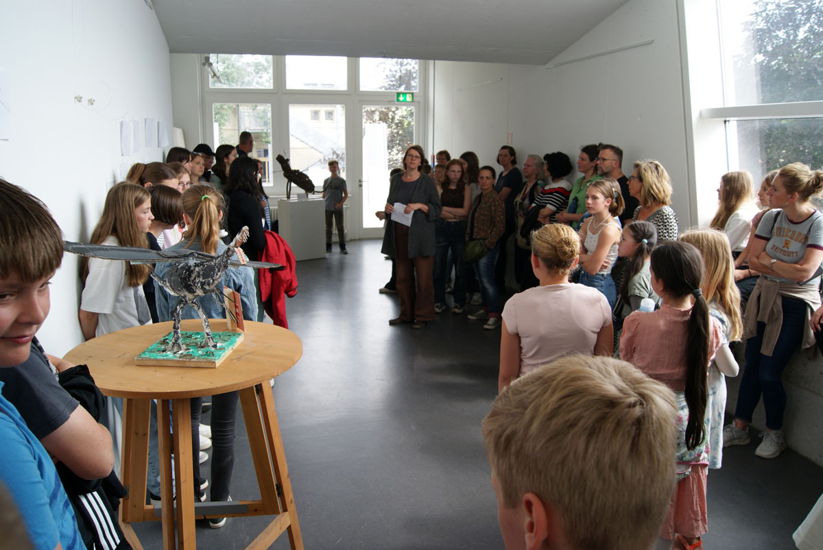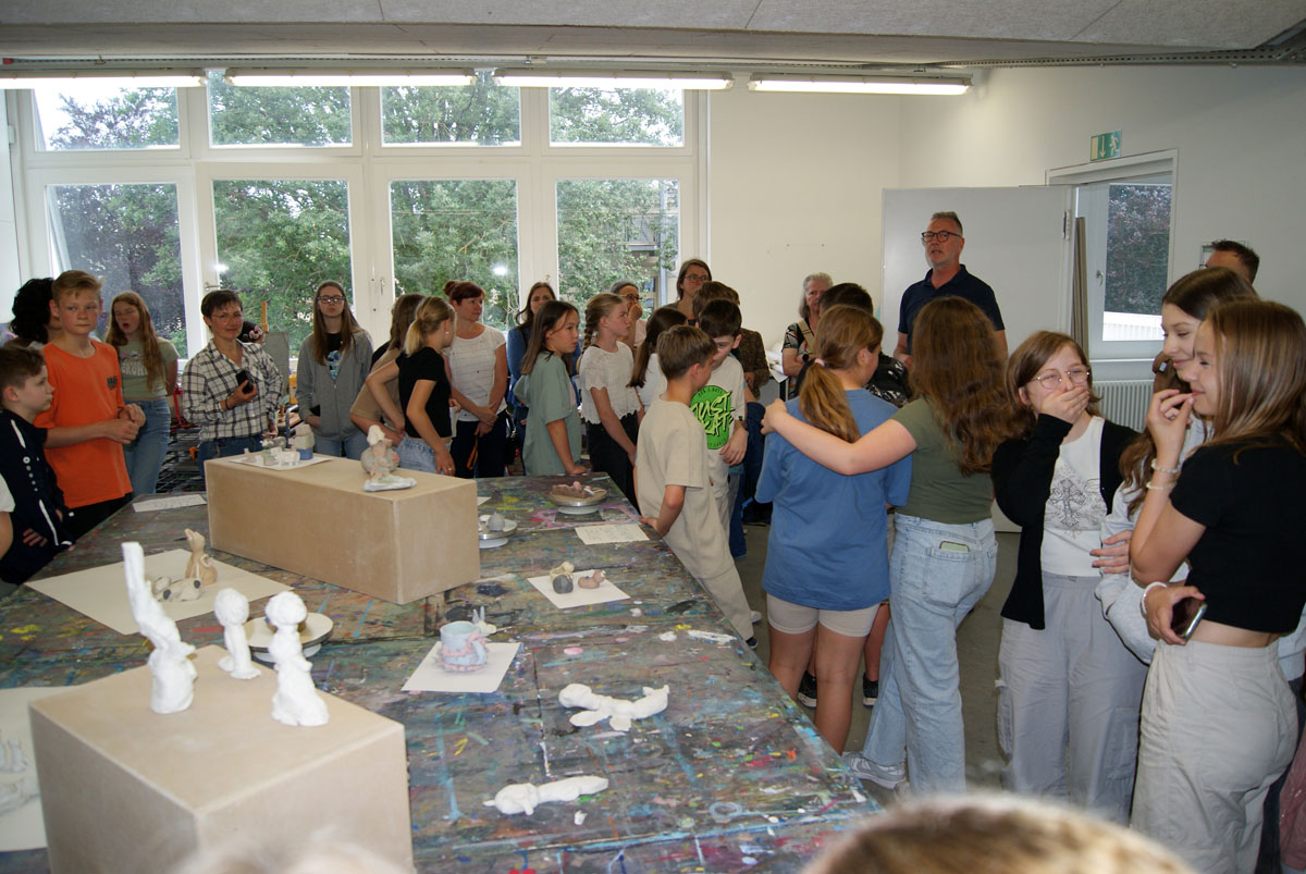 Die fertigen Plastiken wurden auf dem Flur der Kreativwerkstatt ausgestellt. Hier sind Fotos der Präsentation: