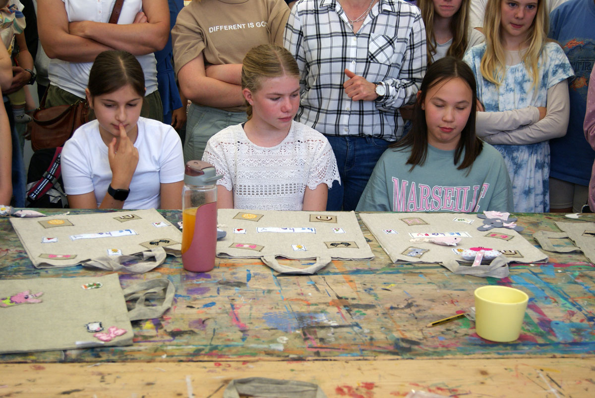 In der Projektwoche entstanden vor allem Tragetaschen und kleine Figuren. Diese wurden am Freitag ausgestellt: