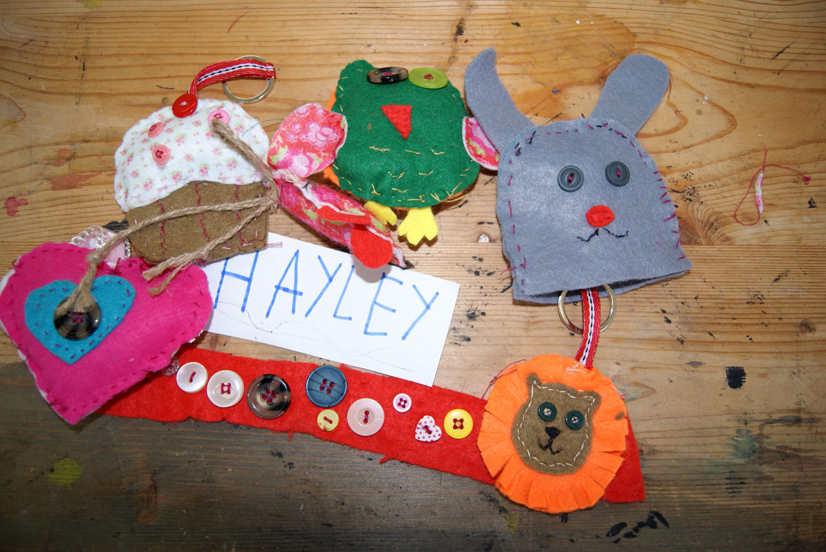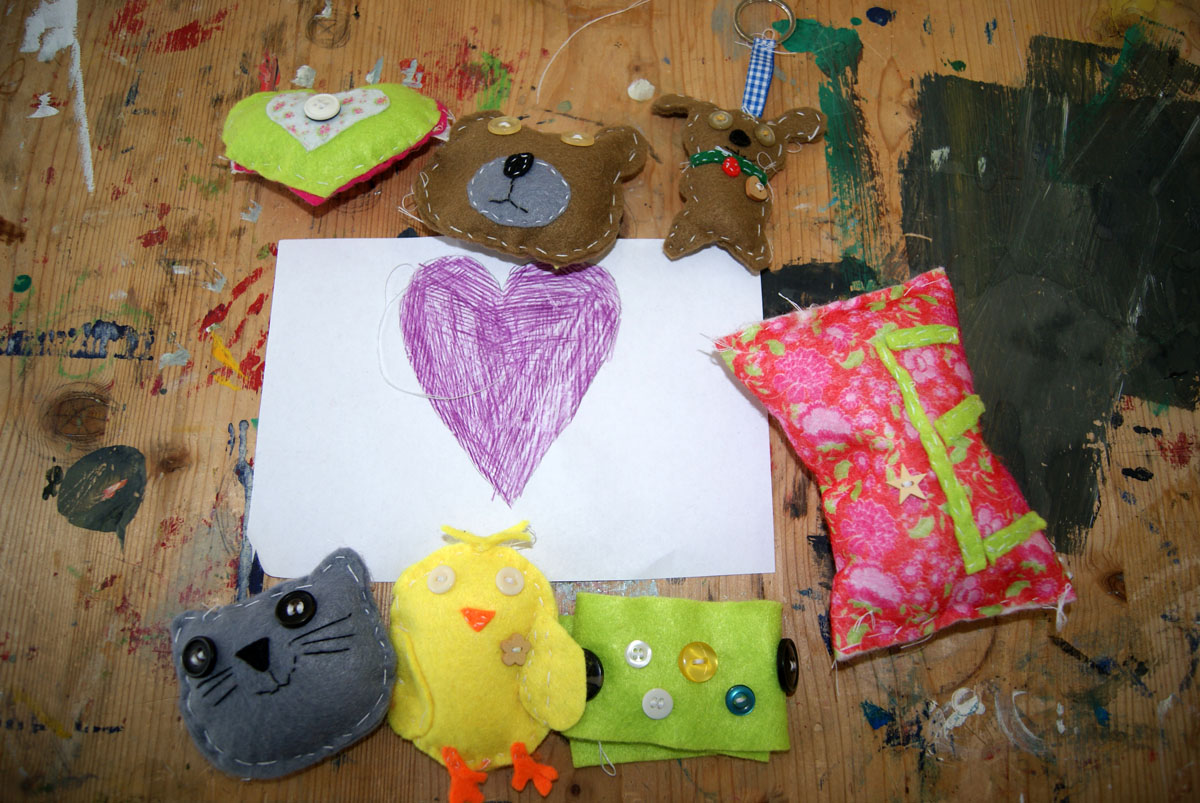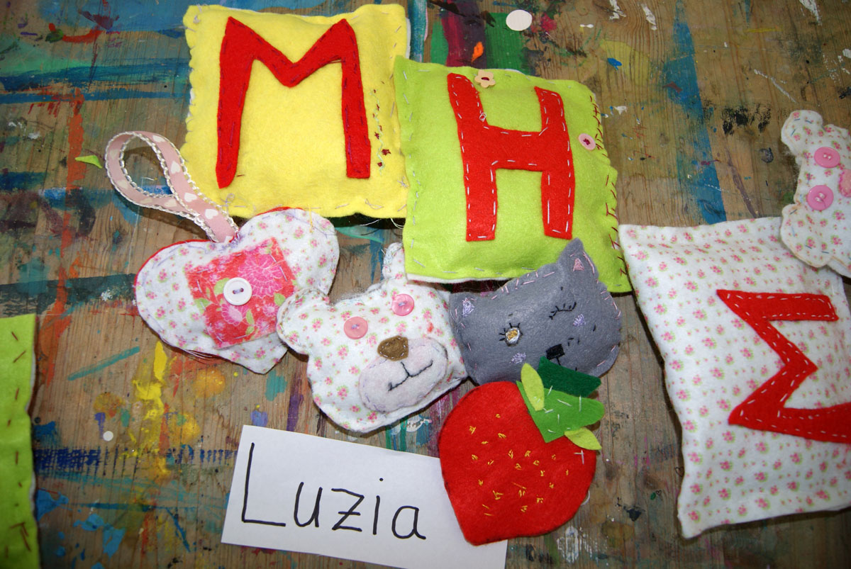 Im Rahmen unserer Projektwoche nähen wir Kuscheltiere, Lesezeichen, kleine Taschen bzw. Handytaschen mit Applikation. Mithilfe verschiedener dekorativer Sticharten, Bändern und Knöpfen könnt ihr eure Ideen umsetzen und individuell gestalten. Hierdurch wird das Arbeiten mit einer Schablone, das Ausschneiden, Nähen mit der Hand und das Annähen von Knöpfen geübt. Ihr könnt eure Kreativität ausleben, Phantasie und räumliches Vorstellen entwickeln.