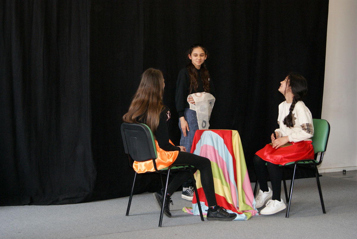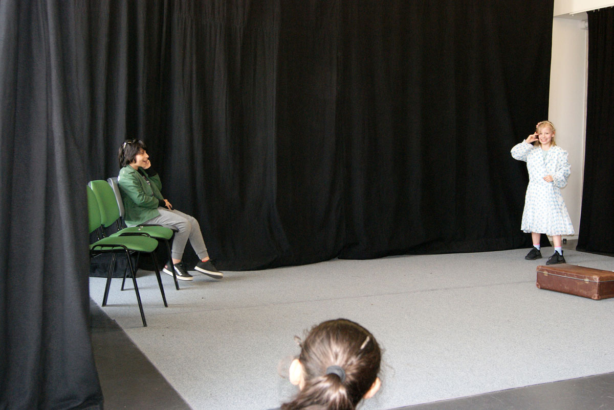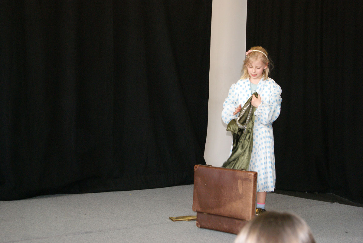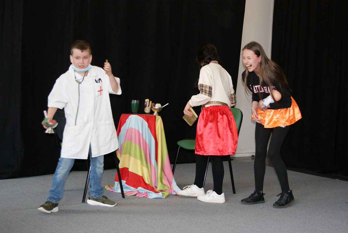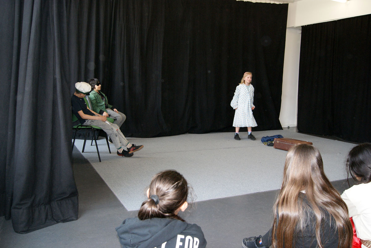 Aus der Projektbeschreibung: Willkommen im Theater! Hier musst du keinen Text lernen, um auf der Bühne zu stehen! Wenn ihr Lust habt, in andere Rollen zu schlüpfen, euch gern auf etwas Neues einlassen wollt, euch gern verkleidet und einfach Spaß daran habt im Spiel kleine Szenen entstehen zu lassen, dann seid ihr im Theaterangebot richtig! Über Interaktionen, Gruppenspiele, der Pantomime und Spiele um die Sprache, entwickelt ihr kleine spielbare Szenen, bis hin zu einer Geschichte, Märchen oder Krimi. Vorkenntnisse im Theater spielen sind nicht erforderlich. Wichtig ist, euch darauf einzulassen. Vorhang auf, das Spiel beginnt!