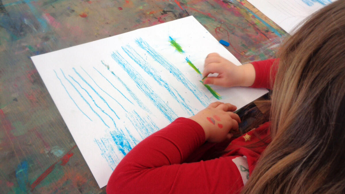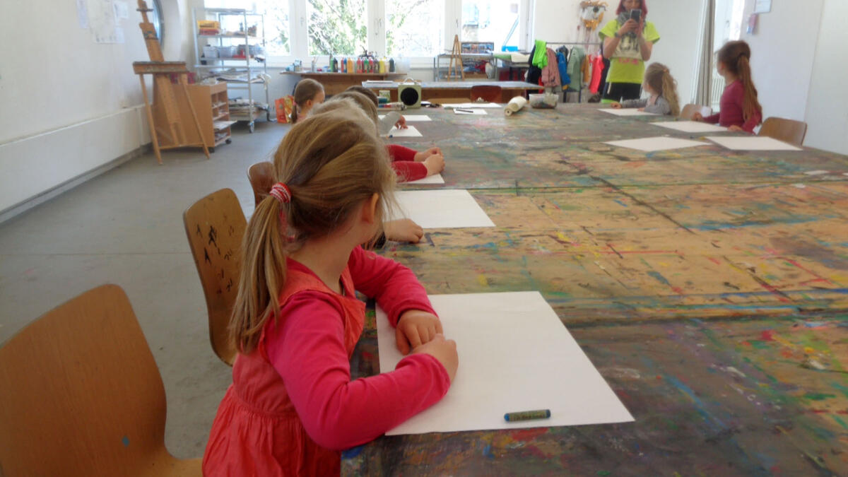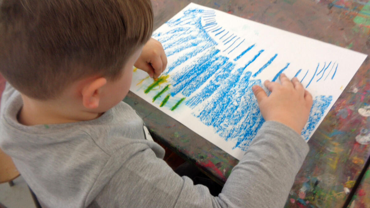 Am 12. April besuchten die Vorschulkinder aus den Gruppen Pfiffikuse und Sonnenkinder aus der Kita Pünktchen die Kreativwerkstatt. Ziel war es das Material Ölpastellkreide kennenzulernen und eine Hörgeschichte als Schlussbild zu illustrieren.
