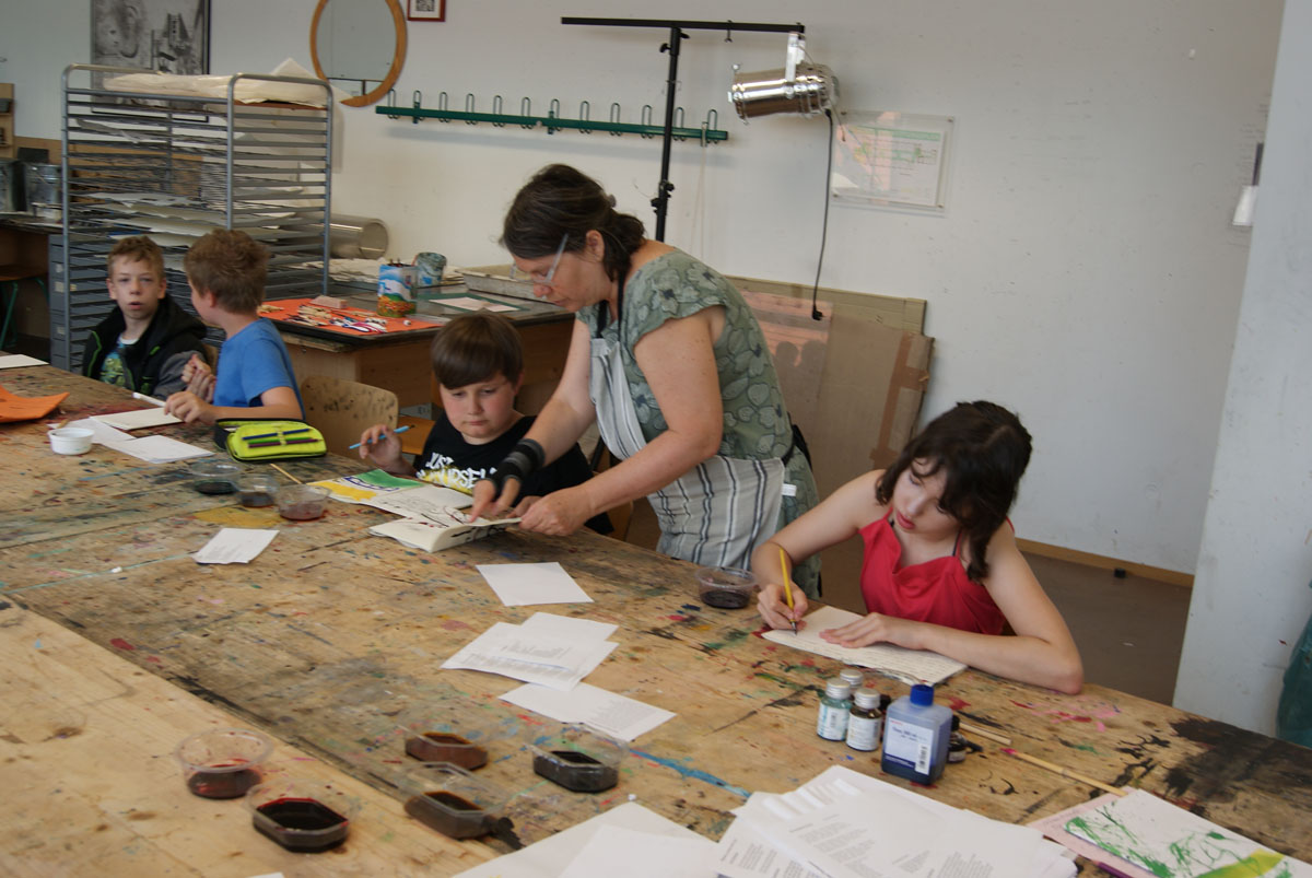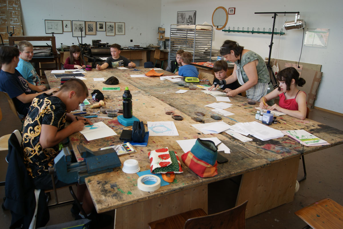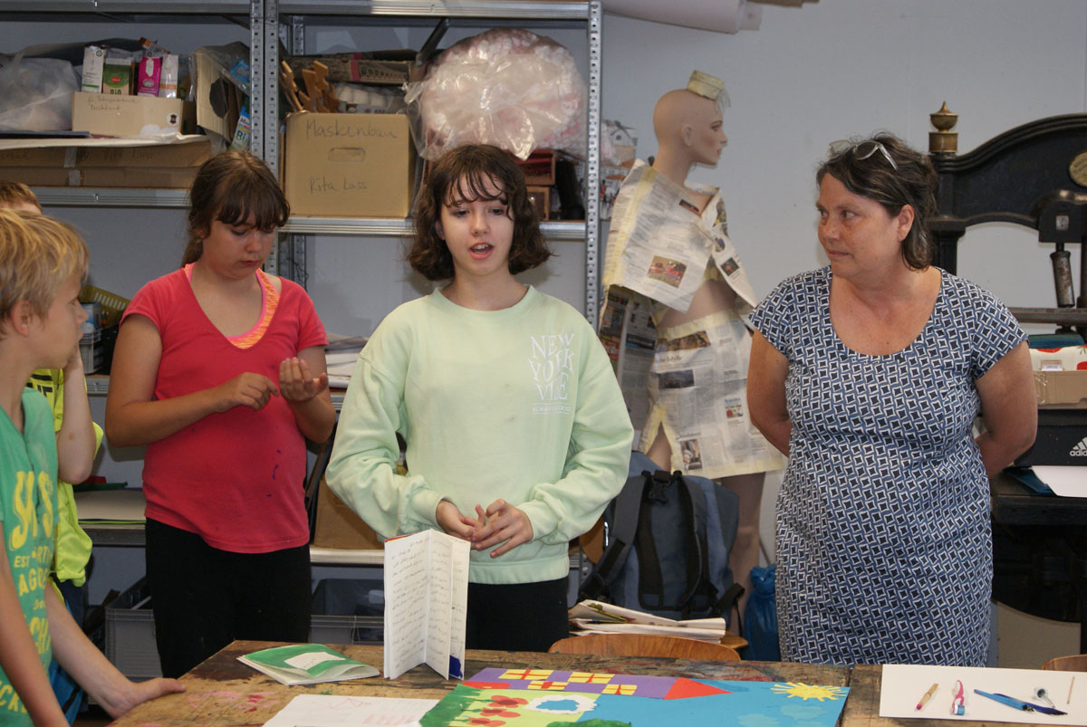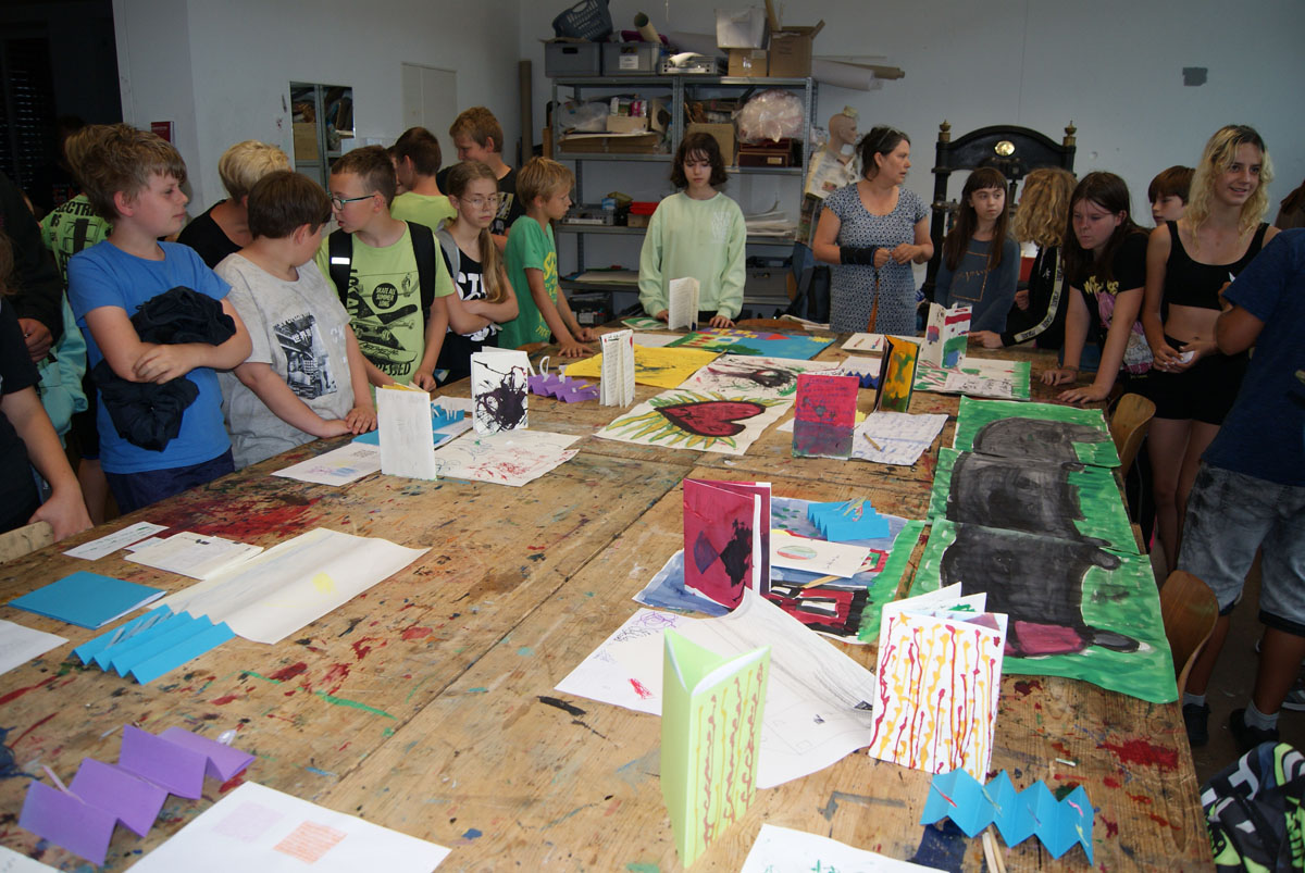 Die Kinder der 5. bis 7. Klassen der Pestalozzischule Aschersleben waren für eine Woche zu Gast in der Kreativwerkstatt. Sie arbeiteten in vier Werkstätten unter Anleitung von Künstlerinnen und der Tänzerin Anne Scholze.