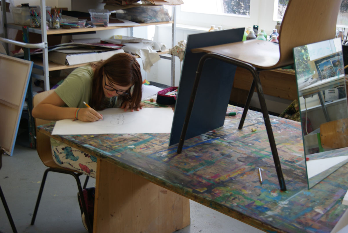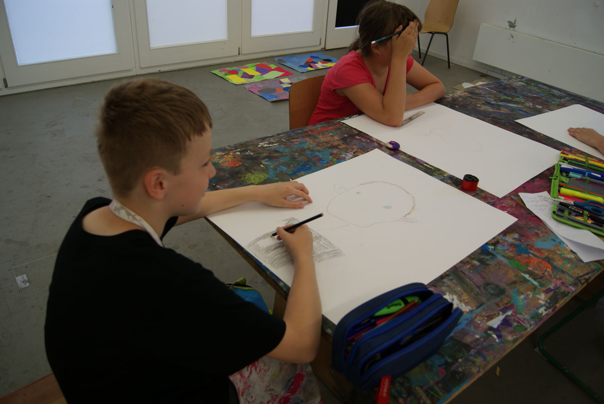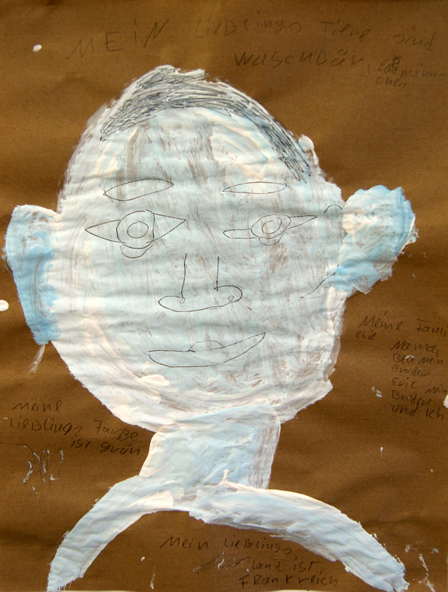 Projektbeschreibung: In dieser Werkstatt arbeiten die Kinder an der Gestaltung von Porträts - und das auf ganz unterschiedliche Weise. Es geht zuerst um die Erfassung eines Gesichtes, welche Teile gestaltet man wie. Dann geht es an die Zeichnung eines Selbstporträts mit Hilfe eines Spiegels oder an eine Porträtdarstellung des Nachbarn. Und schließlich wollen wir Emotionen mit Hilfe von Farben im Gesicht darstellen.