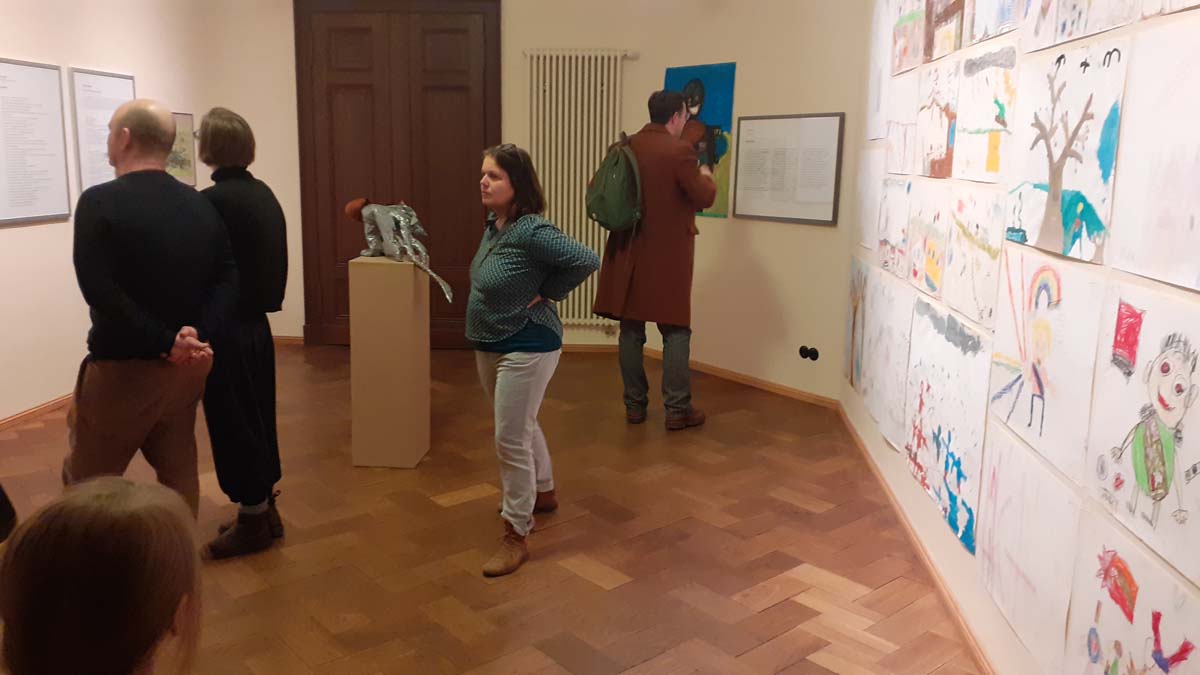 Zur Ausstellungseröffnung im Literaturhaus in Halle begrüßte Herr Alexander Suckel, Leiter des Literaturhauses Halle, zunächst die Gäste. Jörg Blencke, Leiter des Bildungszentrums Bestehornpark, führte mit knappen Worten in den Inhalt des Projektes ein. Er begrüßte neben dem Oberbürgermeister der Stadt Aschersleben, Herrn Steffen Amme, die anwesenden Autorinnen und Autoren des Projektes sowie die zahlreich erschienenen Bildenden Künstlerinnen und Künstler, welche gemeinsam mit den Aschersleber Kindern und Jugendlichen künstlerisch im Jahr 2022 zu den vorgegebenen Texten gearbeitet hatten. Frau Dr. Maria Giuliana dankte im Namen der italienischen Autorinnen und Autoren für die spannende Zusammenarbeit und für ein durchweg gelungenes Projekt, welches eine Fortsetzung verdiene.